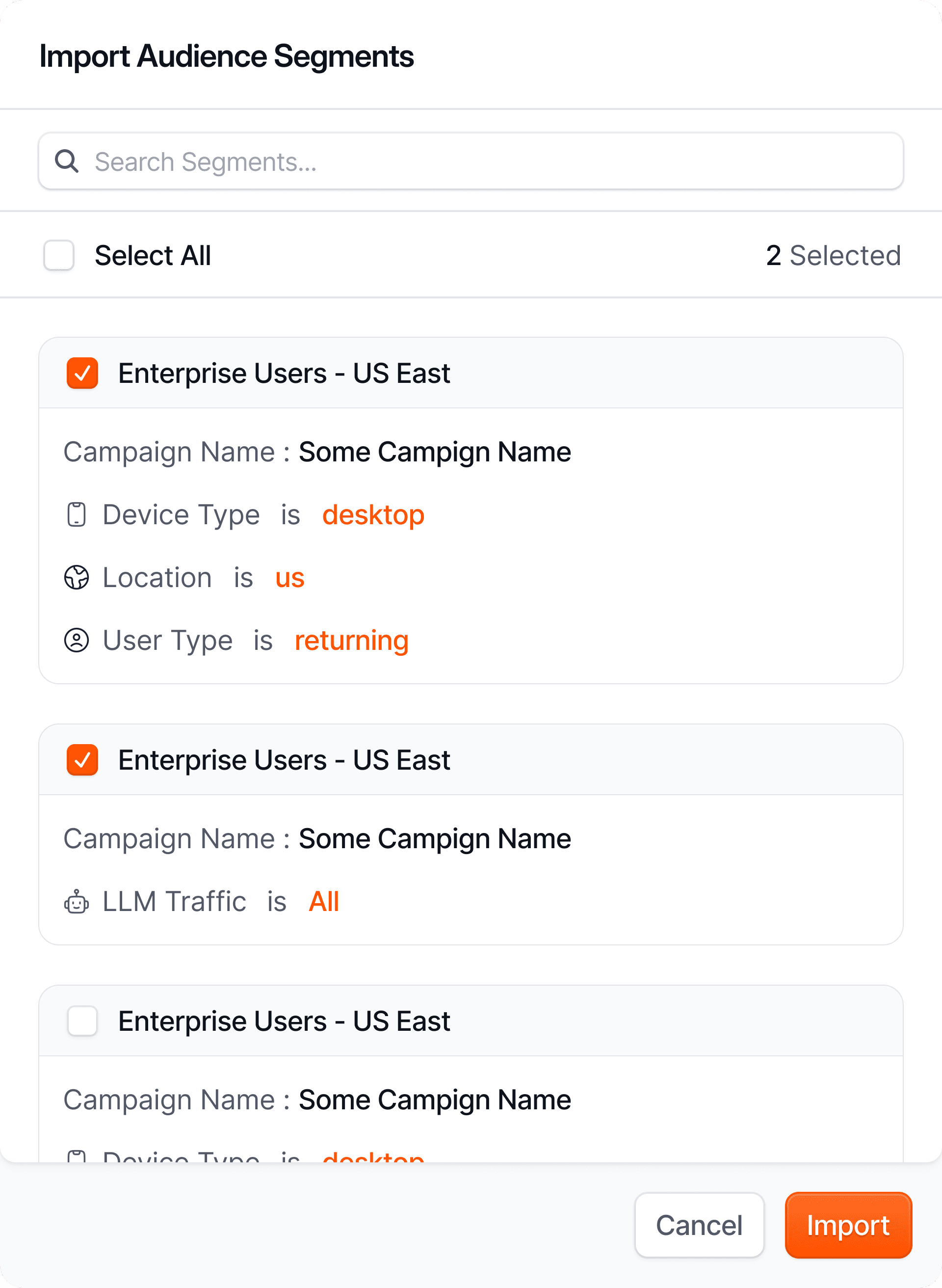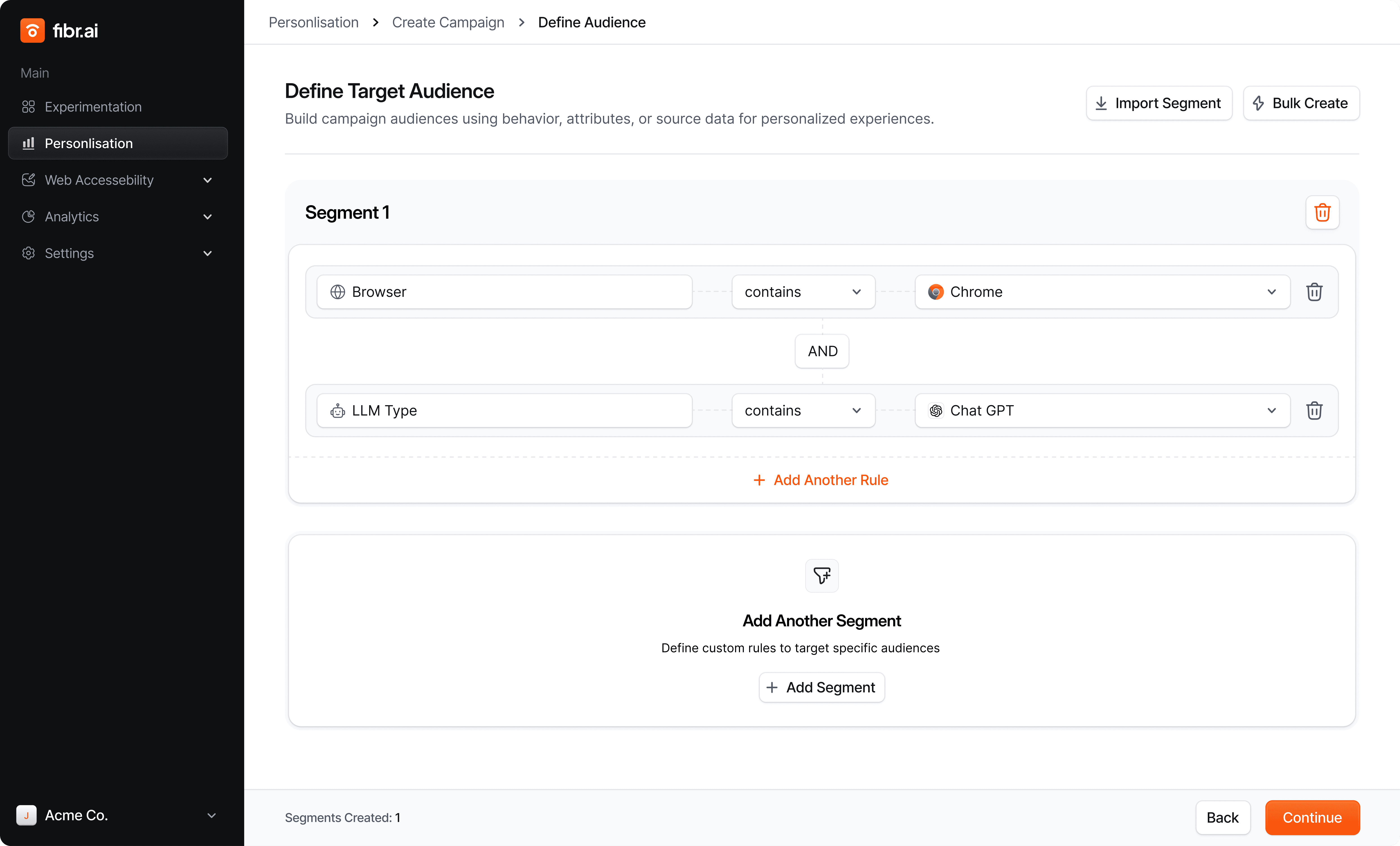 Audience Rules are the conditions that identify users via location, traffic source, behaviour, devices, browsers, utm parameters etc