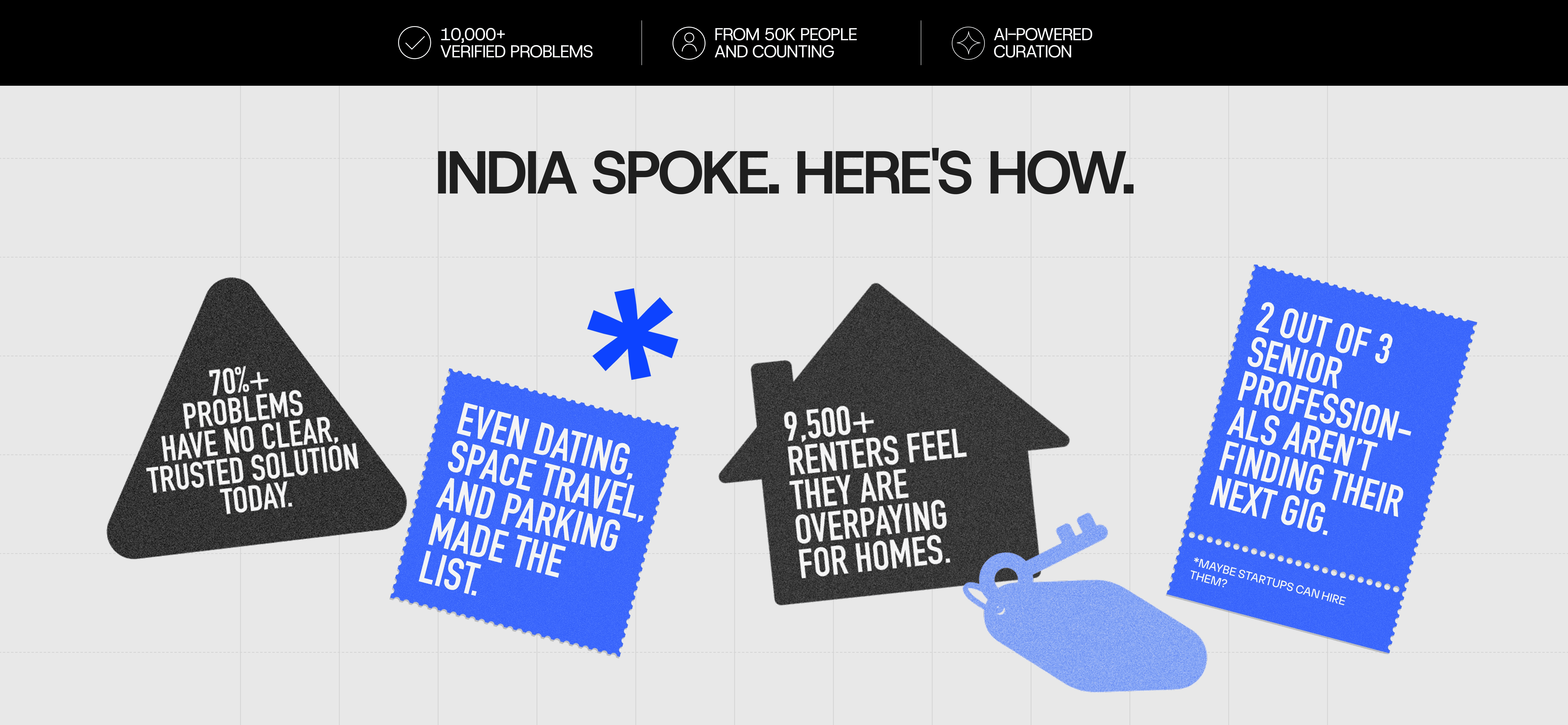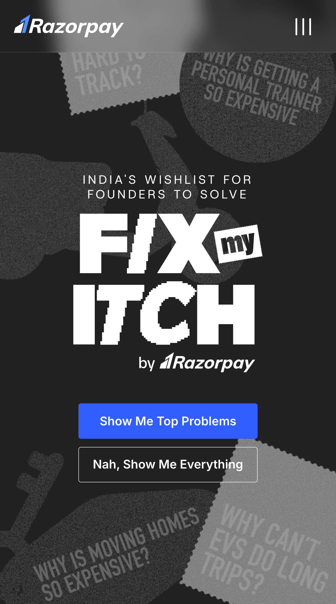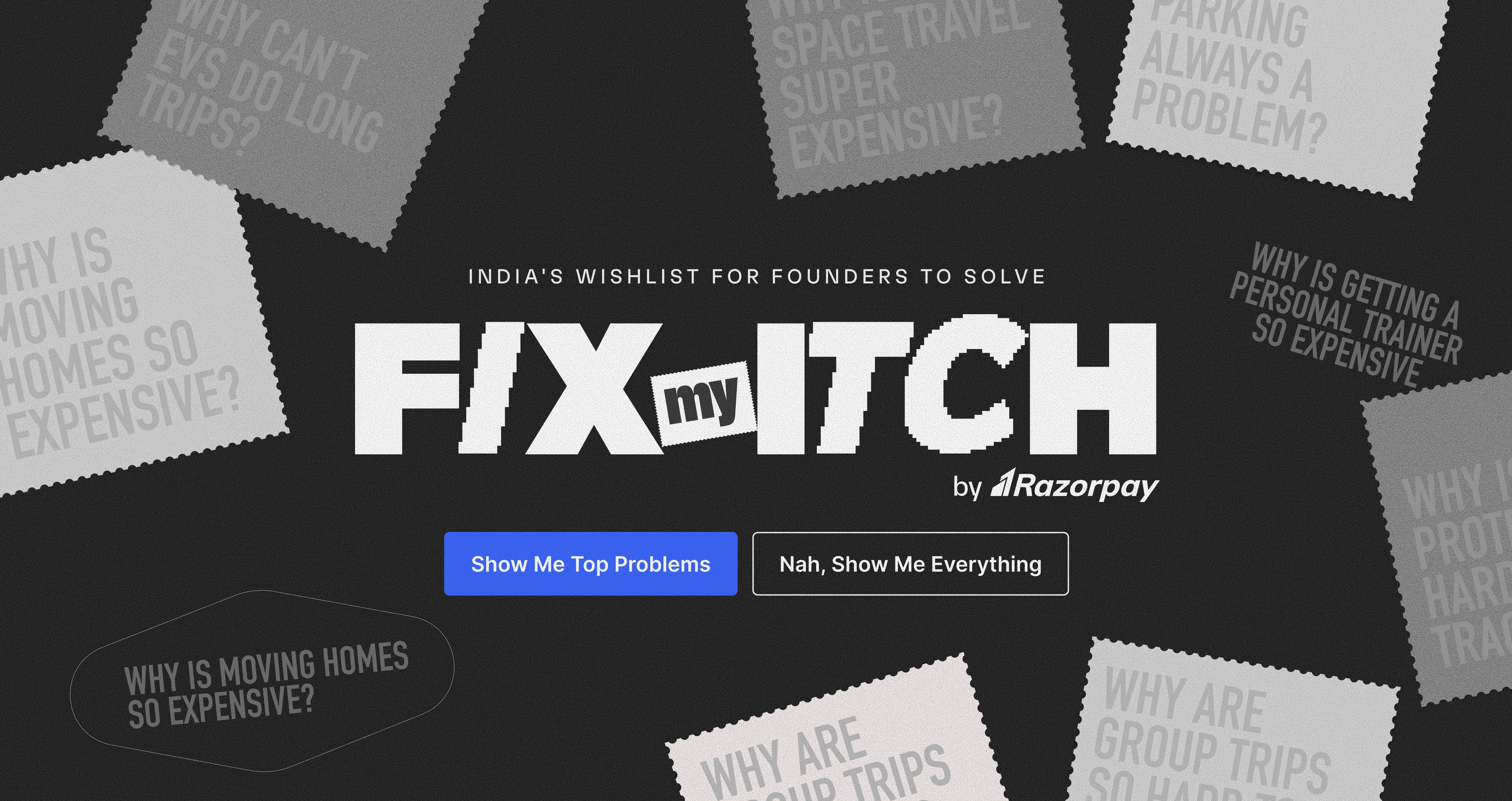 Fix my itch is a campaign which has over 10,000+ real problems faced by Indians, curated by AI and people. Built for founders to identify high-impact startup ideas.